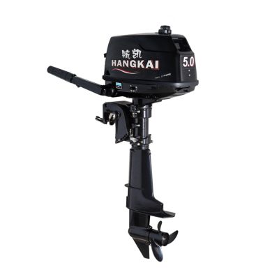 Двухтактный подвесной лодочный мотор HANGKAI 5.0HP изготовлен с использованием японских технологий и имеет простую конструкцию. Он обладает высокой надежностью и простотой в обслуживании. Подвесные моторы HANGKAI 5.0HP имеют традиционную трансмиссию с режимами «вперед», «нейтраль», «назад». Управление дроссельной заслонкой находится на румпеле. Моторы рекомендуются для надувных лодок 3-4 метра и для лодок с жестким корпусом до 5 метров. Мотор HANGKAI 5HP является дефорсированной версией мотора HANGKAI 6.0HP.