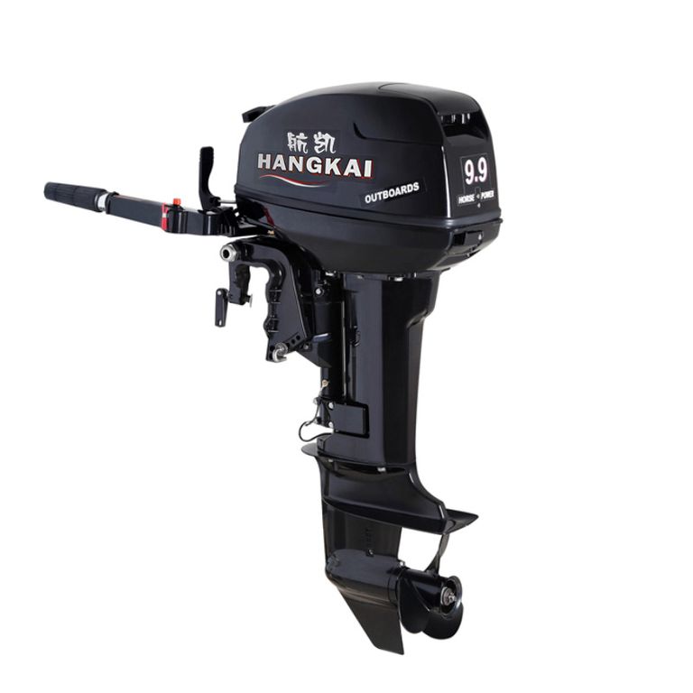 Лодочный мотор HANGKAI 9.9HP 2-тактный 2-цилиндровый. Качественный и мощный (9,9 л.с.) лодочный мотор! Ручка акселлератора находится на румпеле. Этот мотор является дефорсированной версией двигателя HANGKAI 15 и отличается от него модификацией в работе карбюратора и более высоким ресурсом. Мотор оснащен выносным топливным баком на 24 литра, что позволяет совершать длительные прогулки по воде, не задумываясь о запасах топлива. Благодаря хорошей сбалансированности двигатель имеет низкий уровень шума и поэтому не вызывает аккустического дискомфорта и не распугивает рыбу. Благодаря системе зажигания CDI и стартеру запуск двигателя осуществляется одинаково стабильно и без осечек в любых погодных условиях. Система водяного охлаждения двигателя эффективно справляется со своей задачей, что позволяет поддерживать высокие обороты двигателя в течение длительного времени без риска перегрева мотора.