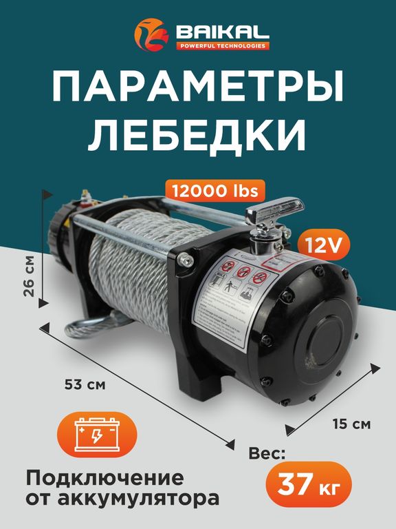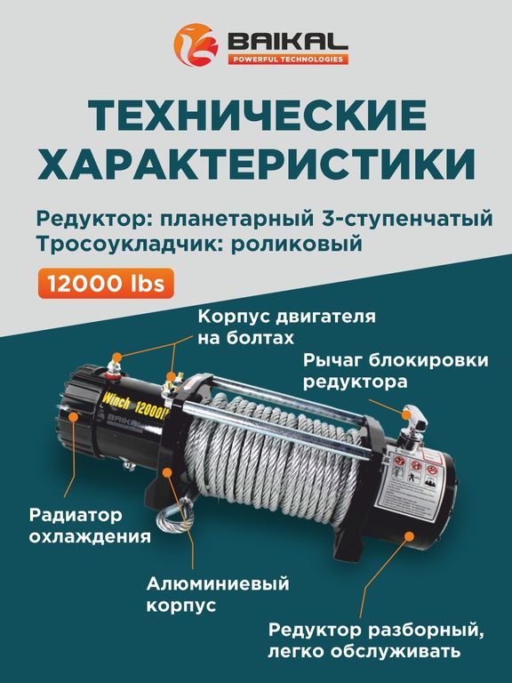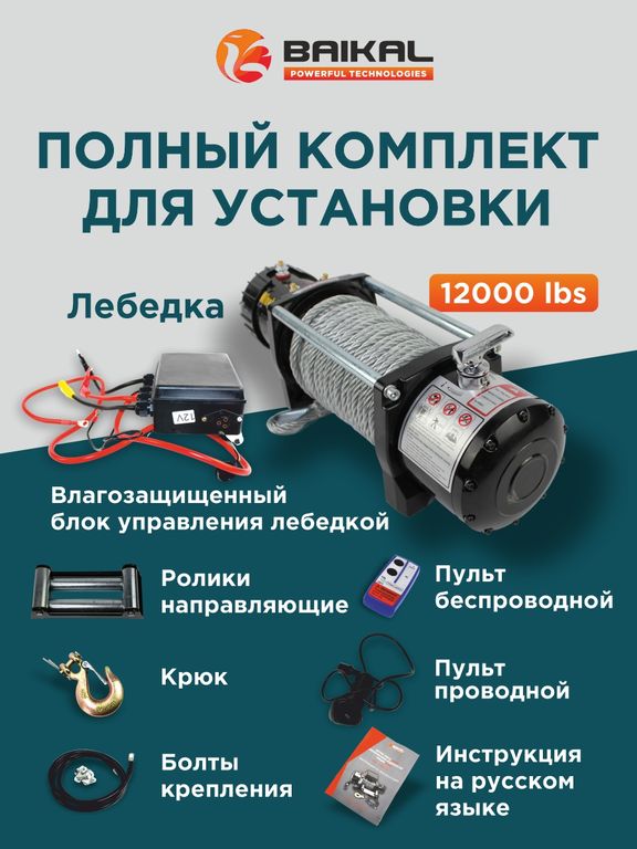 Электрическая лебедка BAIKAL Electric Winch 12000LBS 12V – профессиональное решение для тяжелых условий!