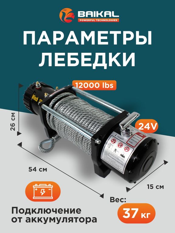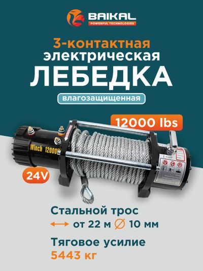Профессиональная лебедка BAIKAL Electric Winch 12000LBS 24V со стальным тросом - специально разработана для грузового и коммерческого транспорта (фур, тягачей, спецтехники).