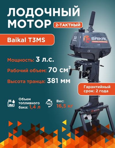 Купить лодочный мотор BAIKAL 3.0HP можно с доставкой по Москве, Московской области и всей России. Лодочный мотор BAIKAL 3.0HP - это компактный лодочный агрегат, который станет вам надежным помощником во время рыбалки и отдыха на воде. Используется на одноместных или двухместных лодках. Мощность мотора достигает 3 л.с. оснащен обьем 70 куб.см, при весе в 16,5 кг, что позволяет легко переносить его одному. Простое освоение и обслуживание, подходит для новичков.